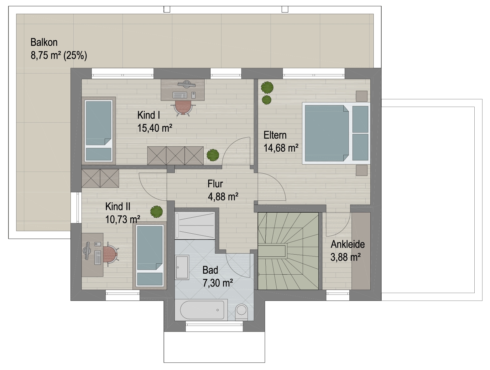 Balkon (25%) 8,75 m²