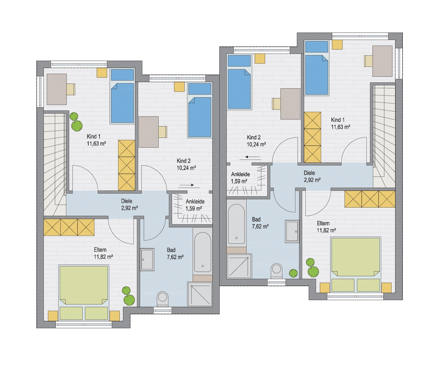 Das ideale Haus für Paare, junge Familien oder alleinerziehende Eltern. 99 m² Wohnfläche verteilen sich auf 2 Geschosse. Im Erdgeschoss befinden sich der offen gehaltene Wohn-, Koch- und Essbereich, ein Abstellraum, ein Gäste-WC, sowie ein zusätzliches Zimmer indem sich ihre Gäste sicher sehr wohl fühlen werden. Im Obergeschoss befinden sich die Rückzugsbereiche der Hausbewohner, 3 Schlafräume und 1 Badezimmer.